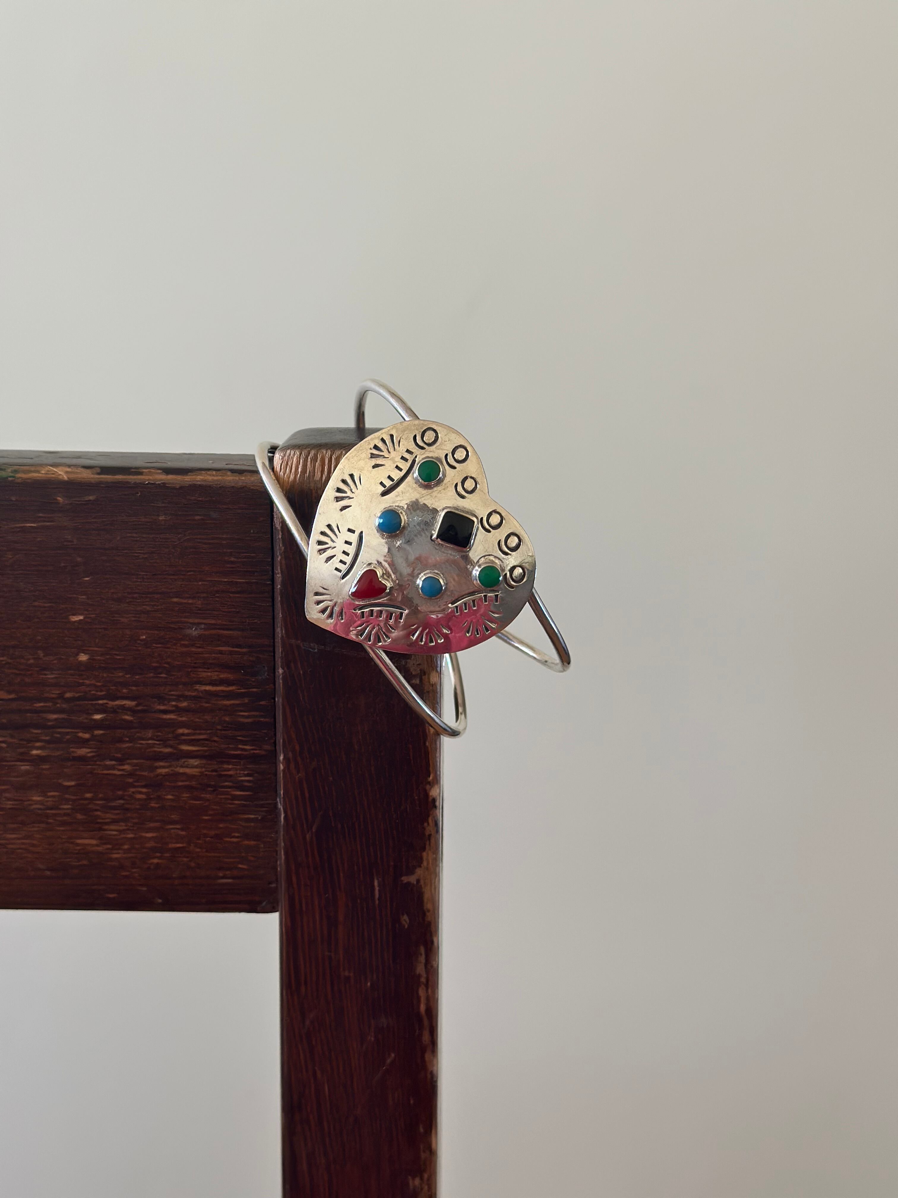 ハートカフwith4ストーン メキシカンシルバー ユニセックスバングル