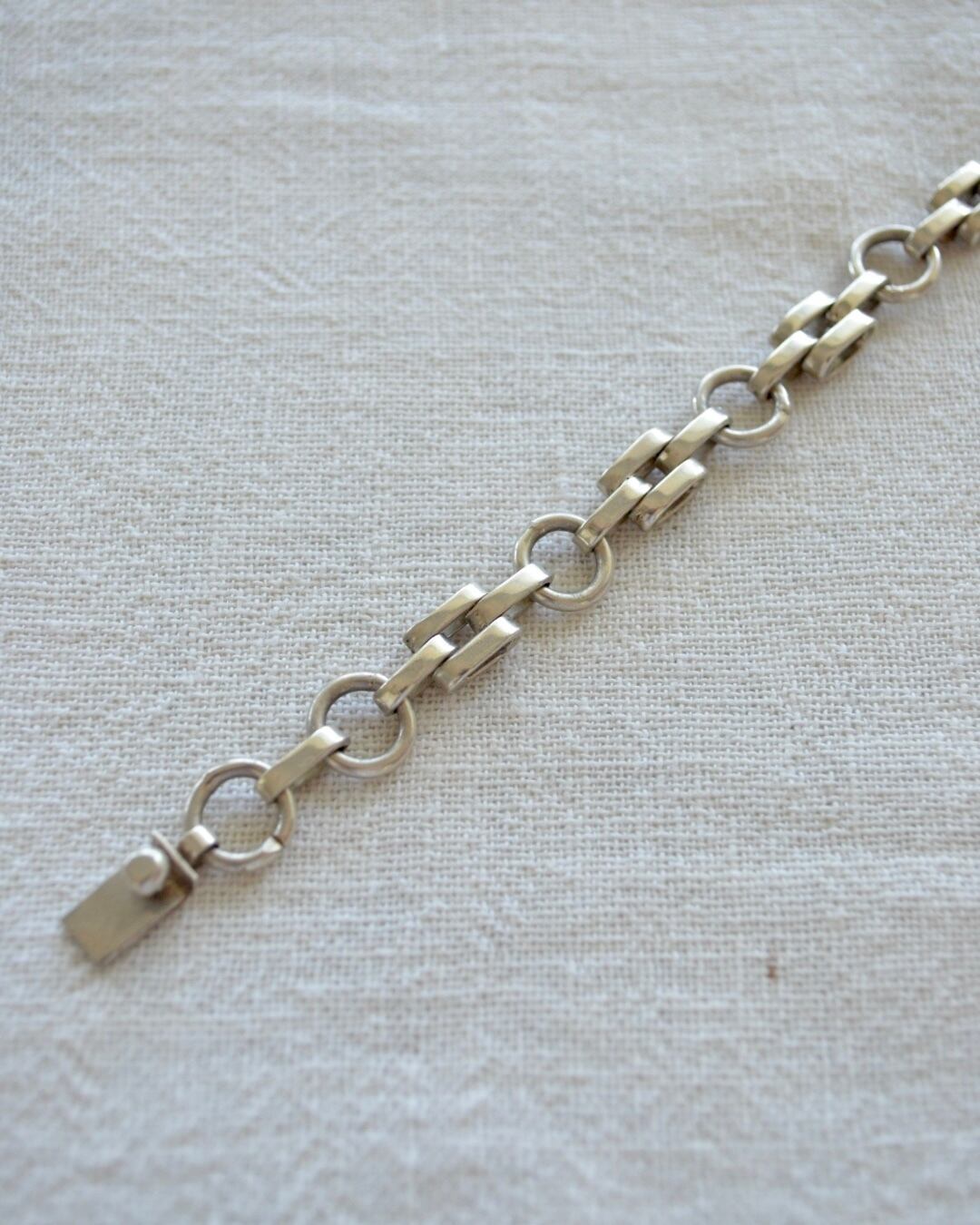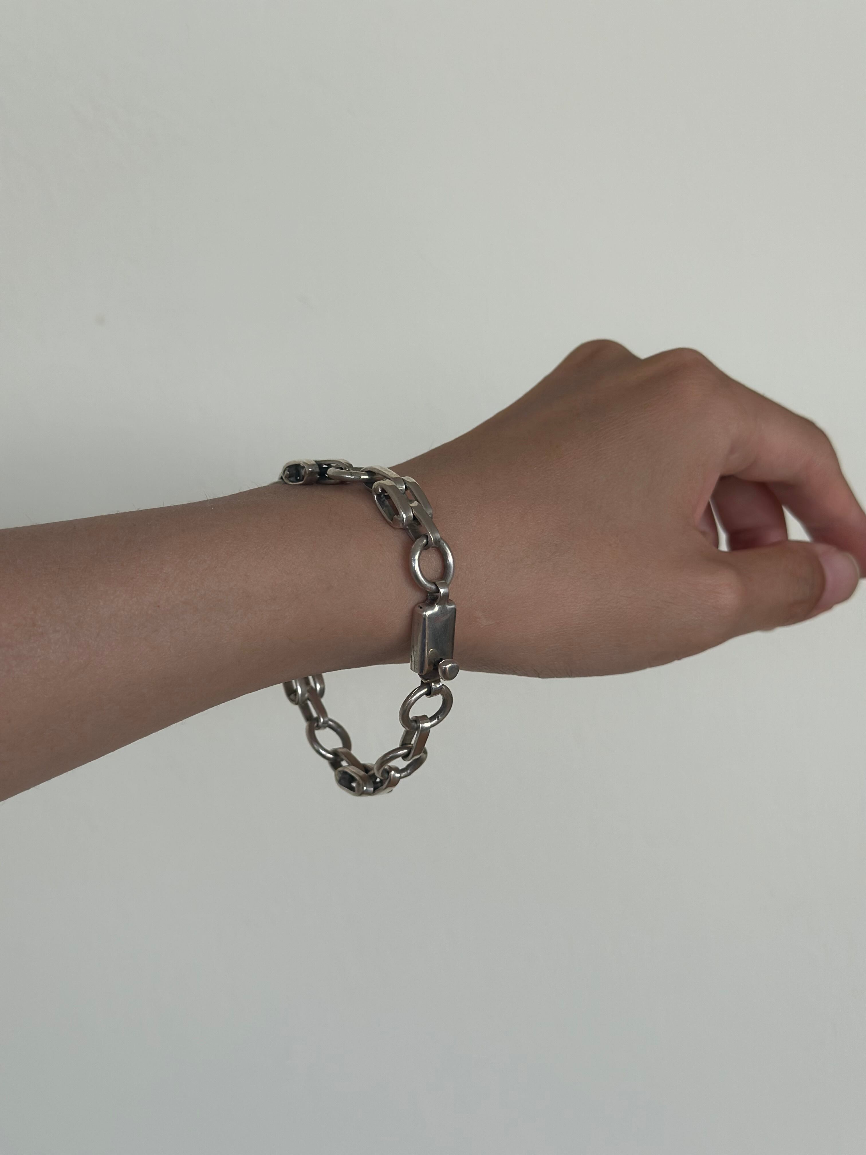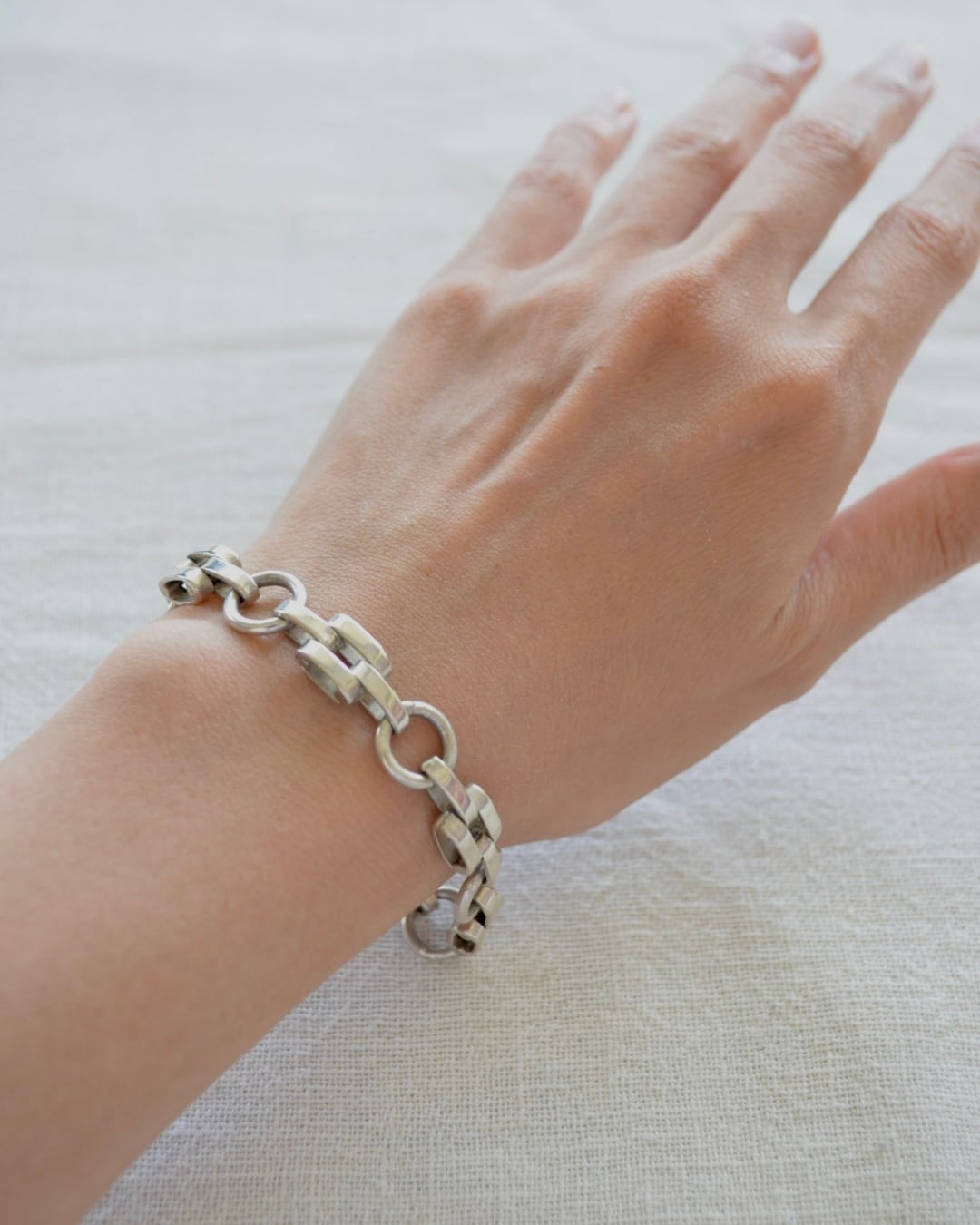 ドーナツ型とオーバル型がユニークに連なったチェーンブレスです。