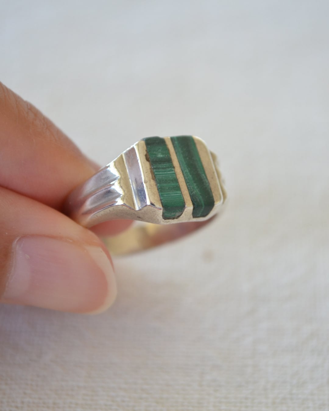 ㉝マラカイト インレイリング(22号) メキシカンシルバー