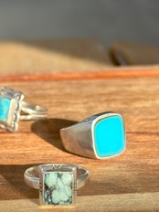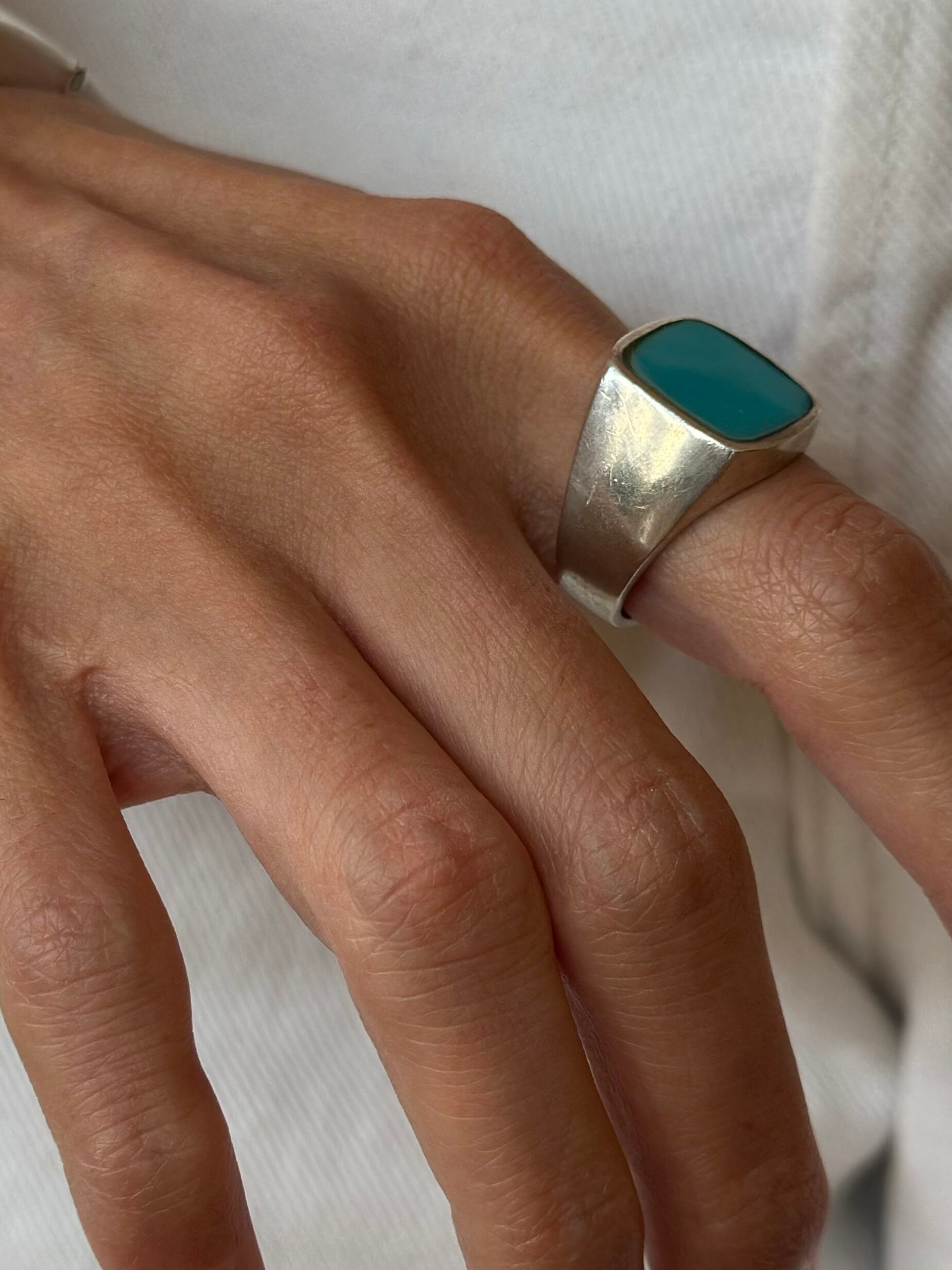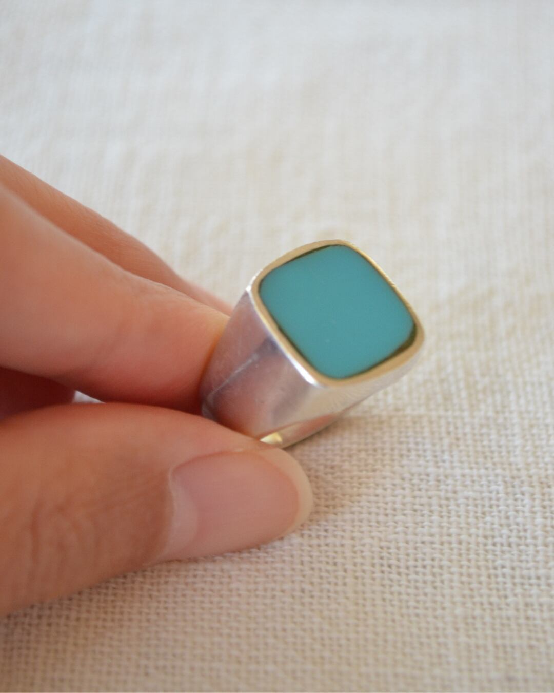 鮮やかなターコイズが埋め込まれたシグネットリング、メゾンブランドやジュエリーブランドさんも出して人気のある