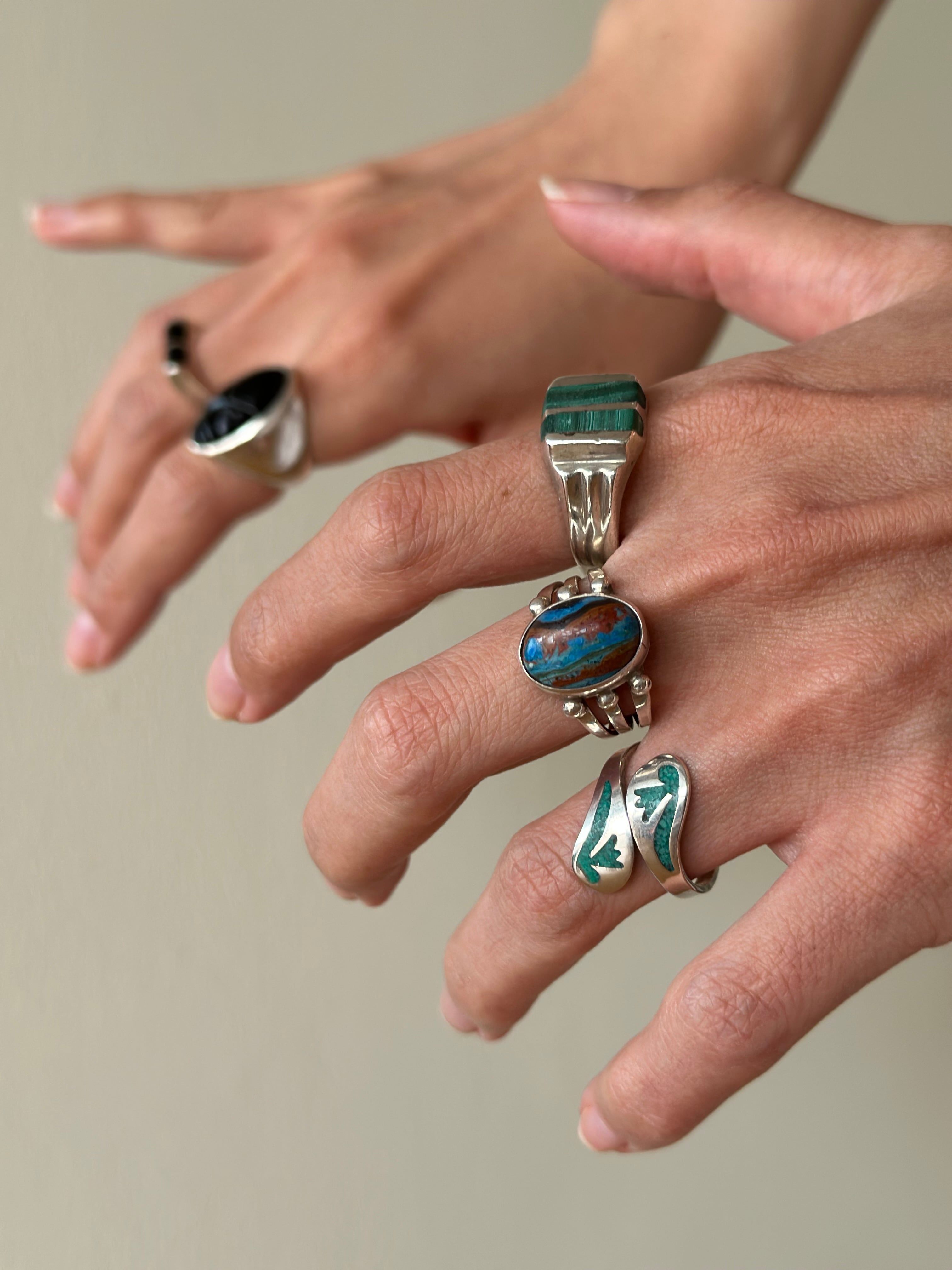 デザインの特徴や刻印から恐らくネイティブアメリカン、ナバホの作品かと思われます。