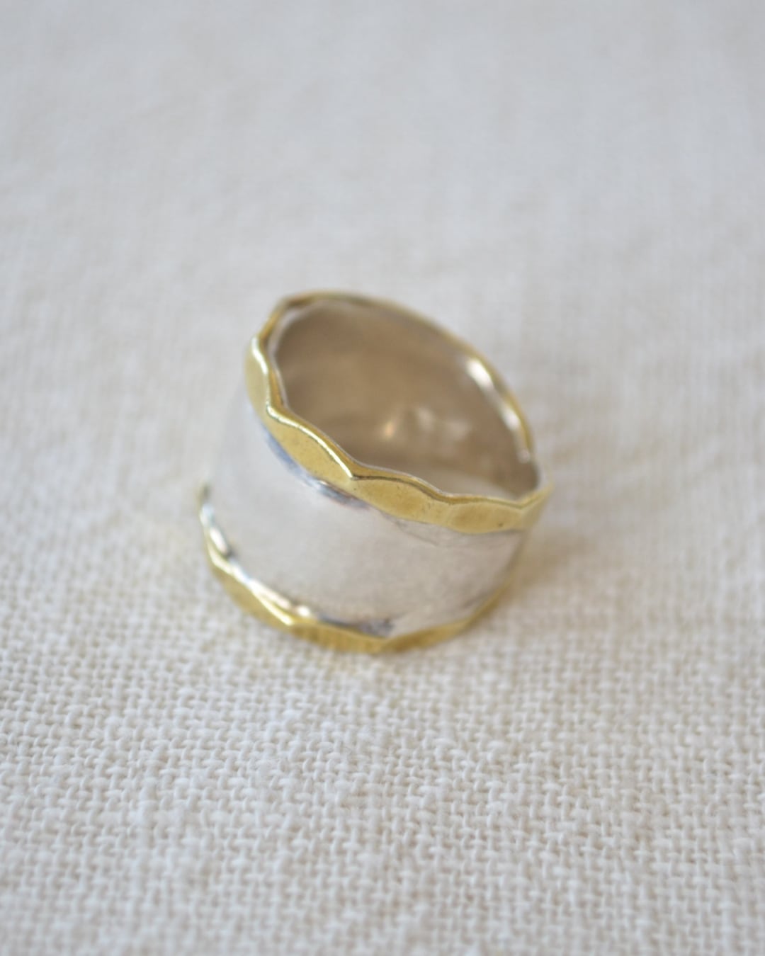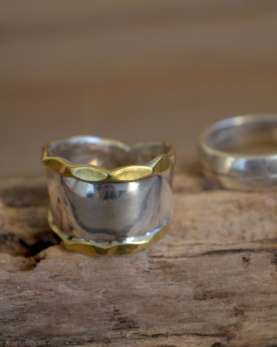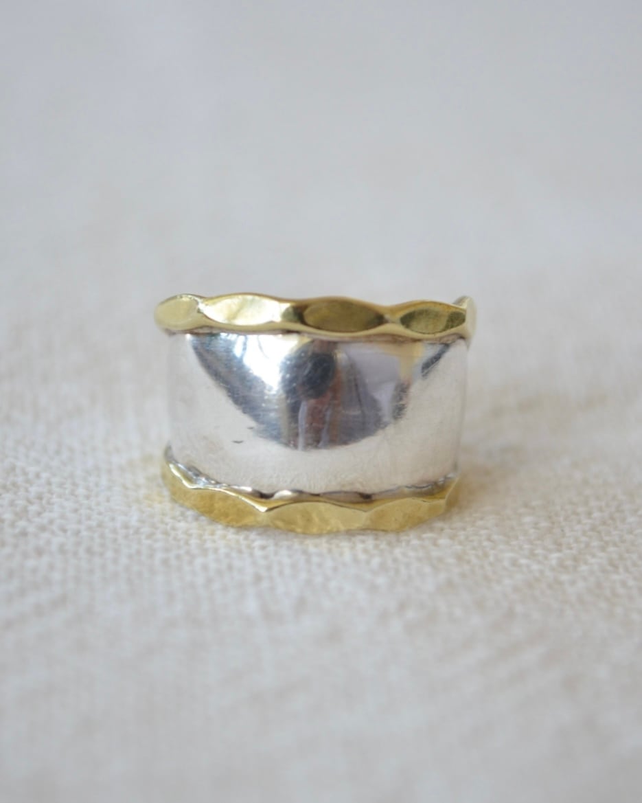 ⑥槌目ふちリング ツートーンカラー(11-12号) メキシカンシルバー