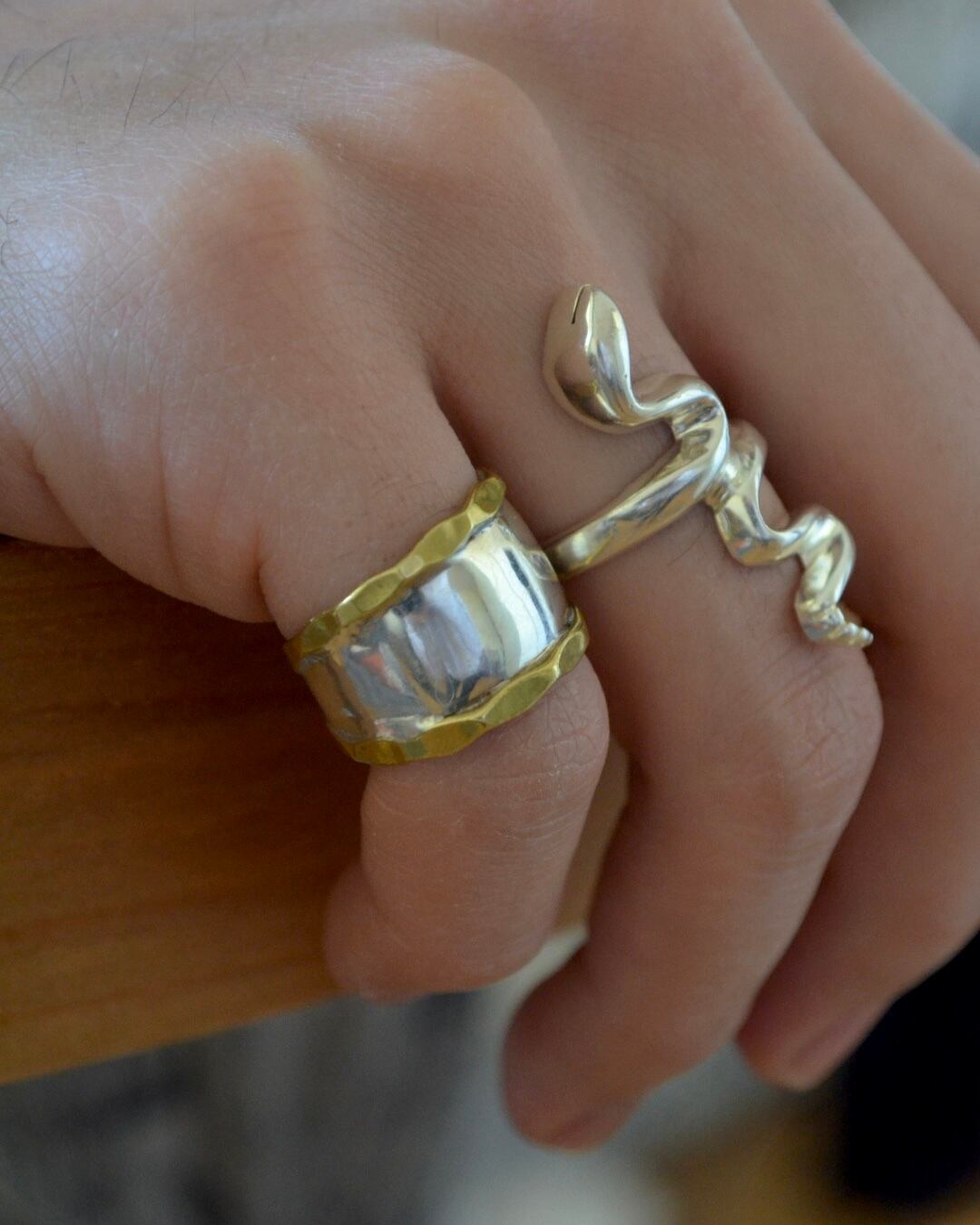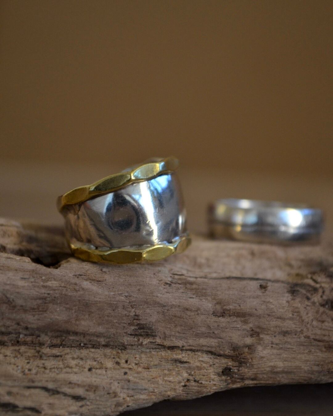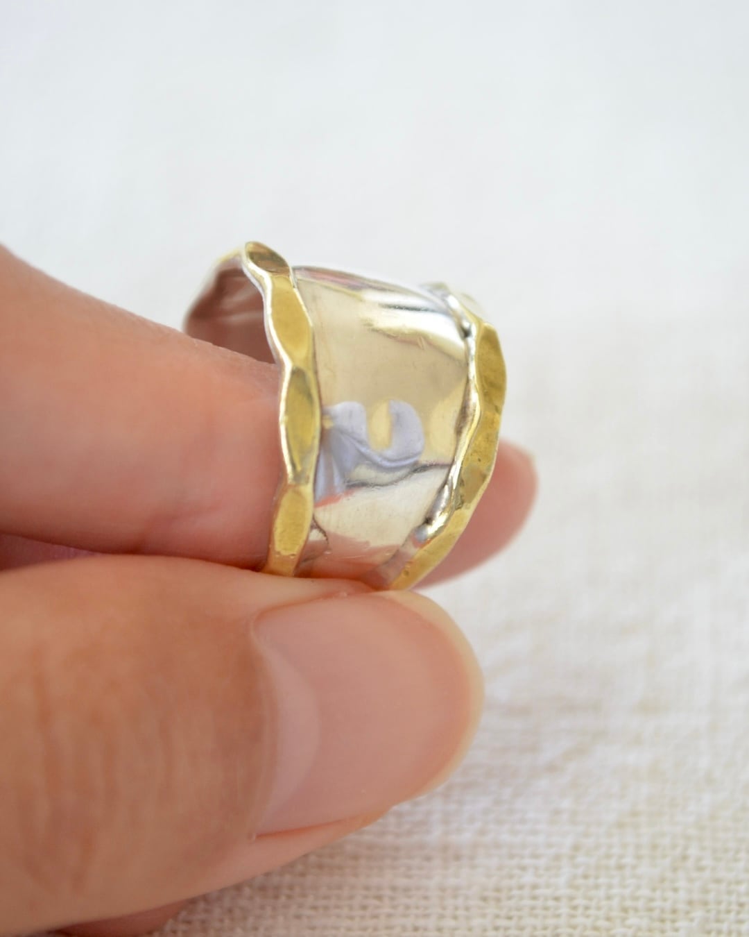⑥槌目ふちリング ツートーンカラー(11-12号) メキシカンシルバー
