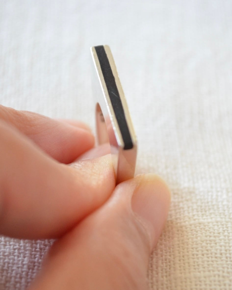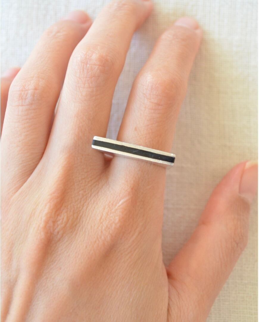 中心にはオニキスが線で描いたようにシャープに入った珍しいデザインがモード感あるスタイリッシュな雰囲気です。