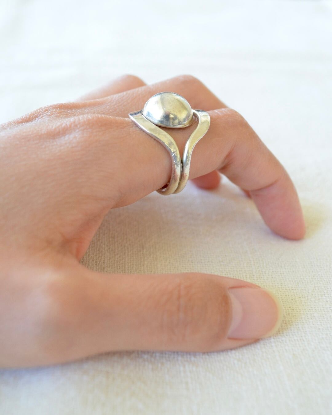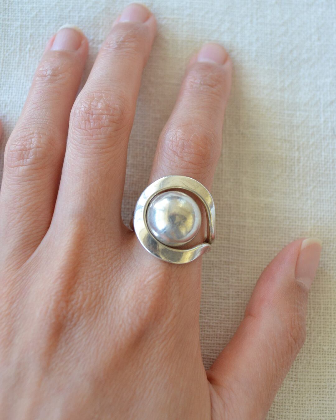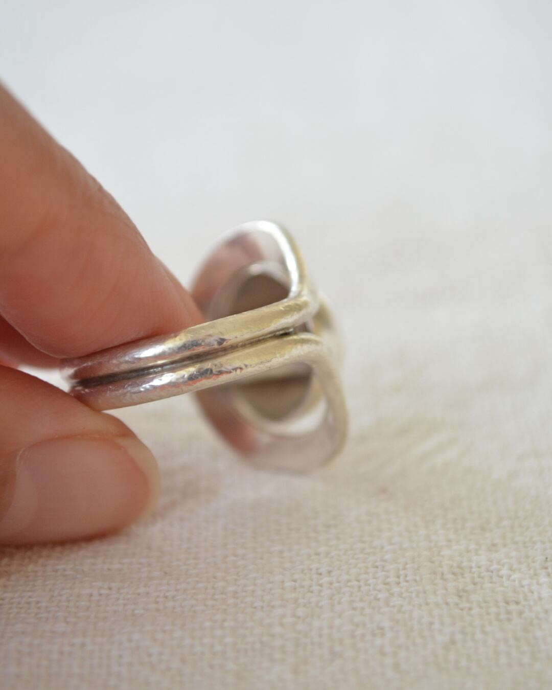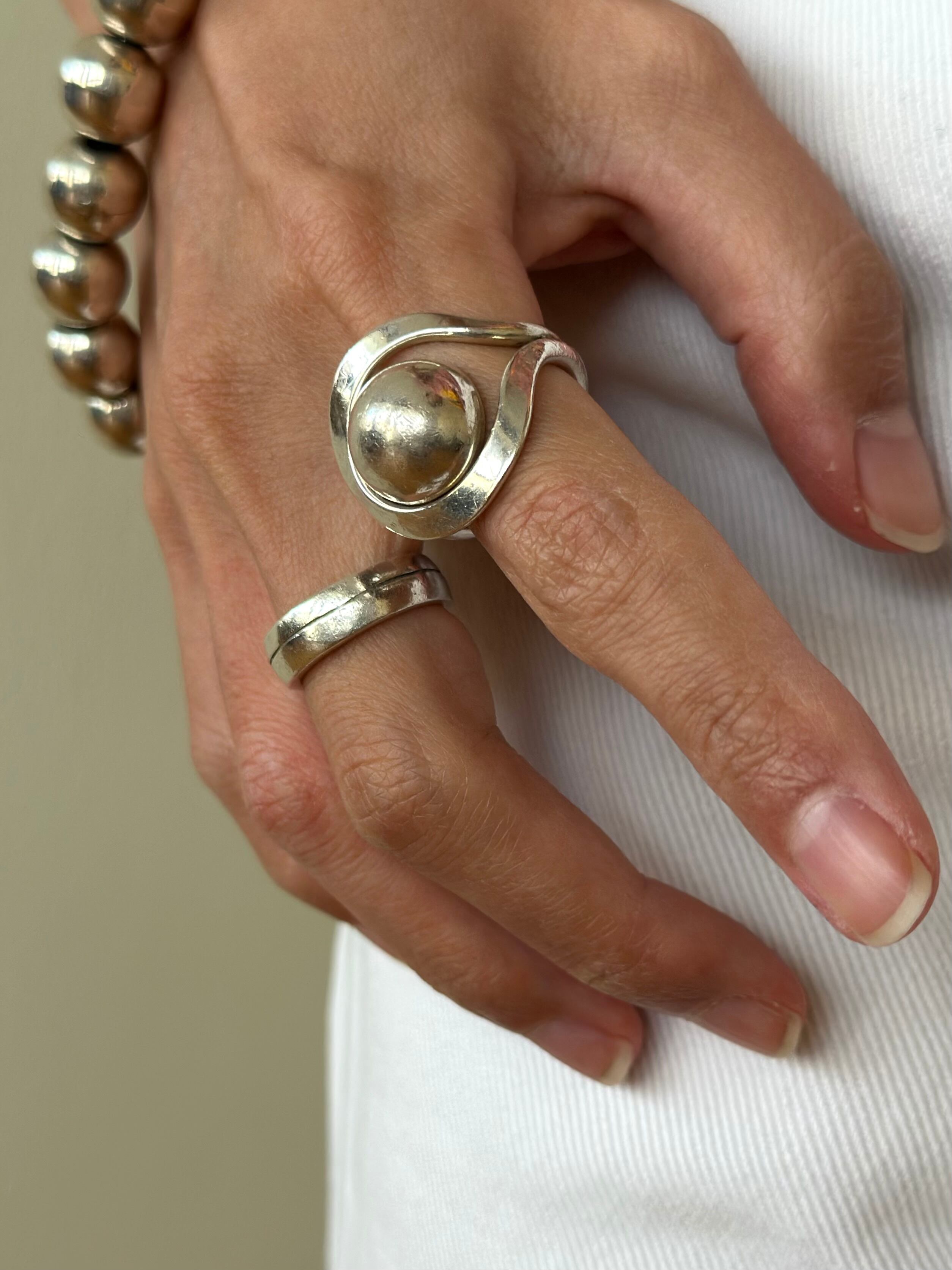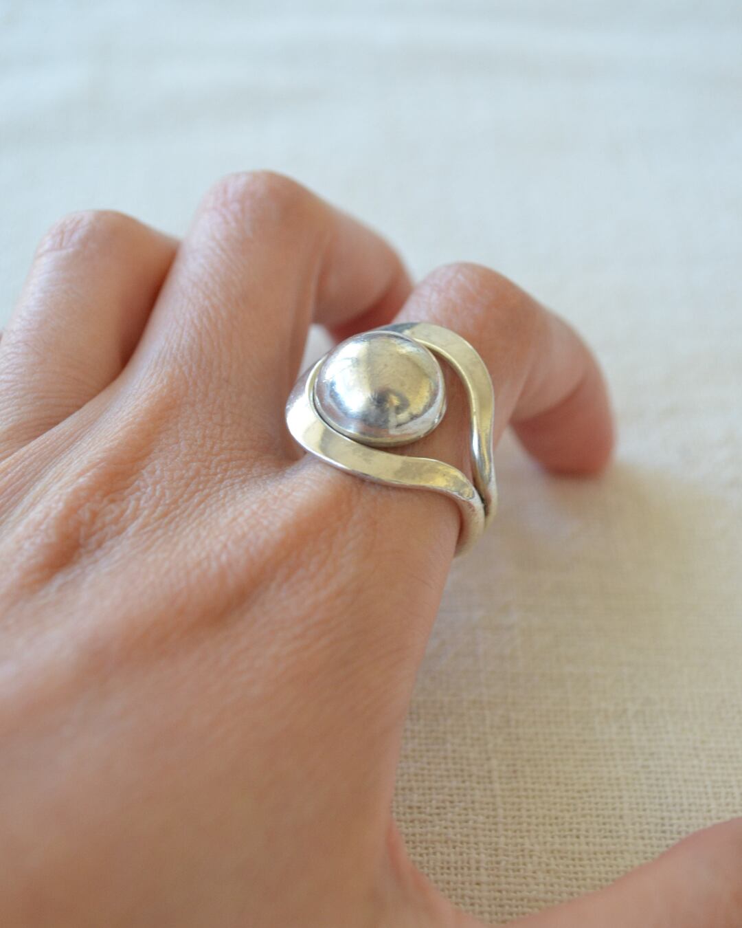 オールシルバーデザインが手元を華やかに美しくしてくれるデザインリングかと思います。