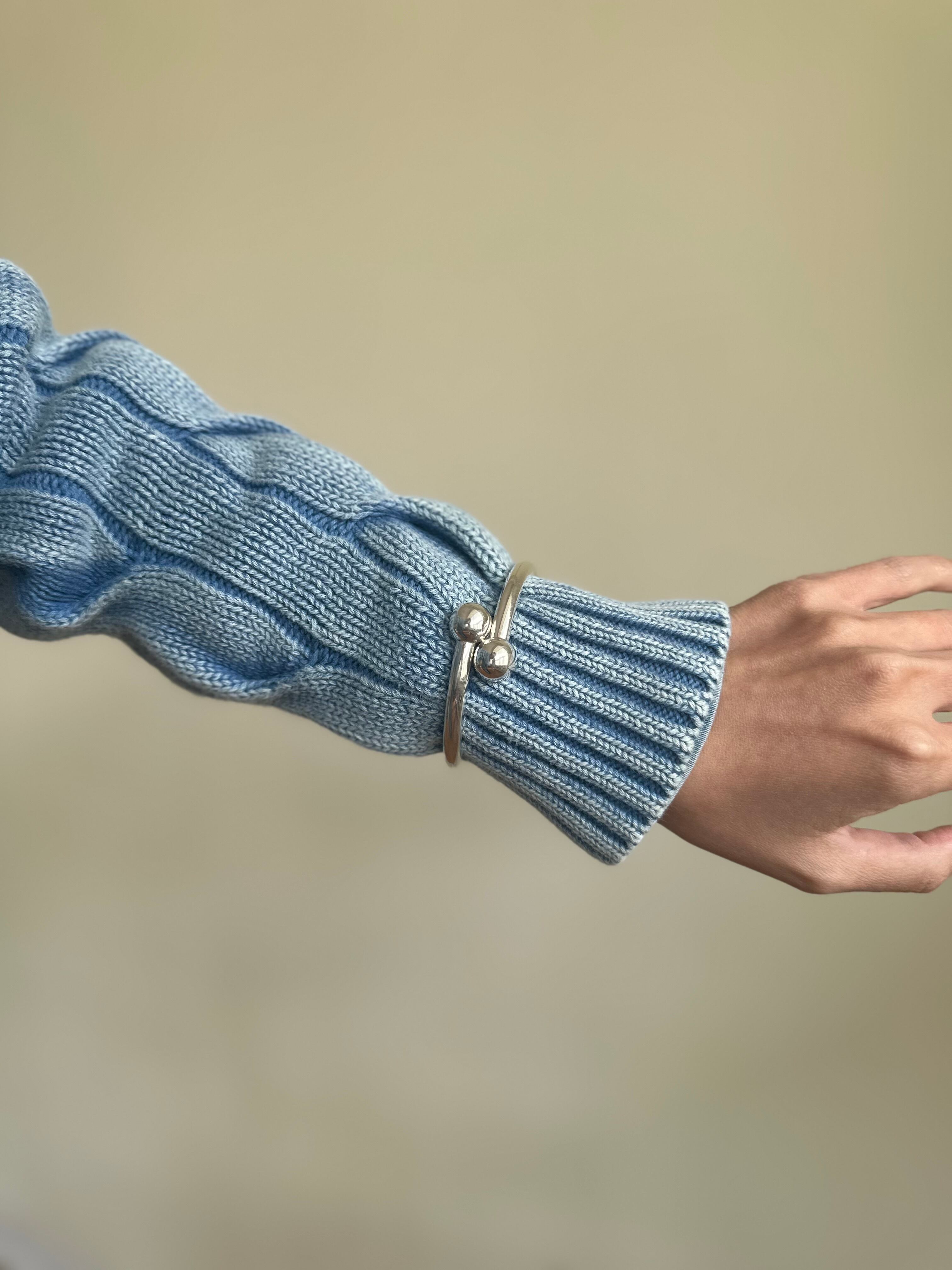 開口するバングルタイプなのでトップスの上から着用したりと幅のあるスタイルに活用出来るアイテムかと思います。